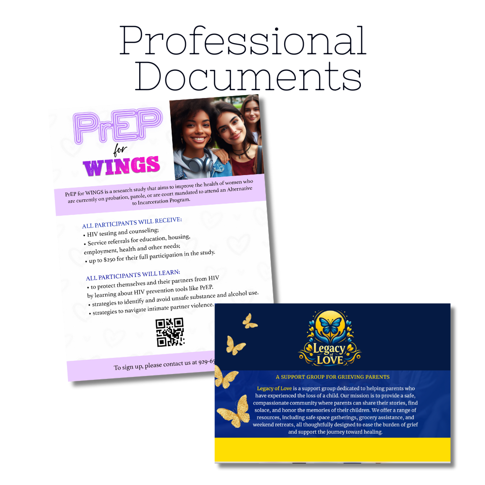 Whether you need a program overview, informational PDF, mission document, or community handout, we focus on clean layout, thoughtful typography, and emotional clarity that connects with your audience.